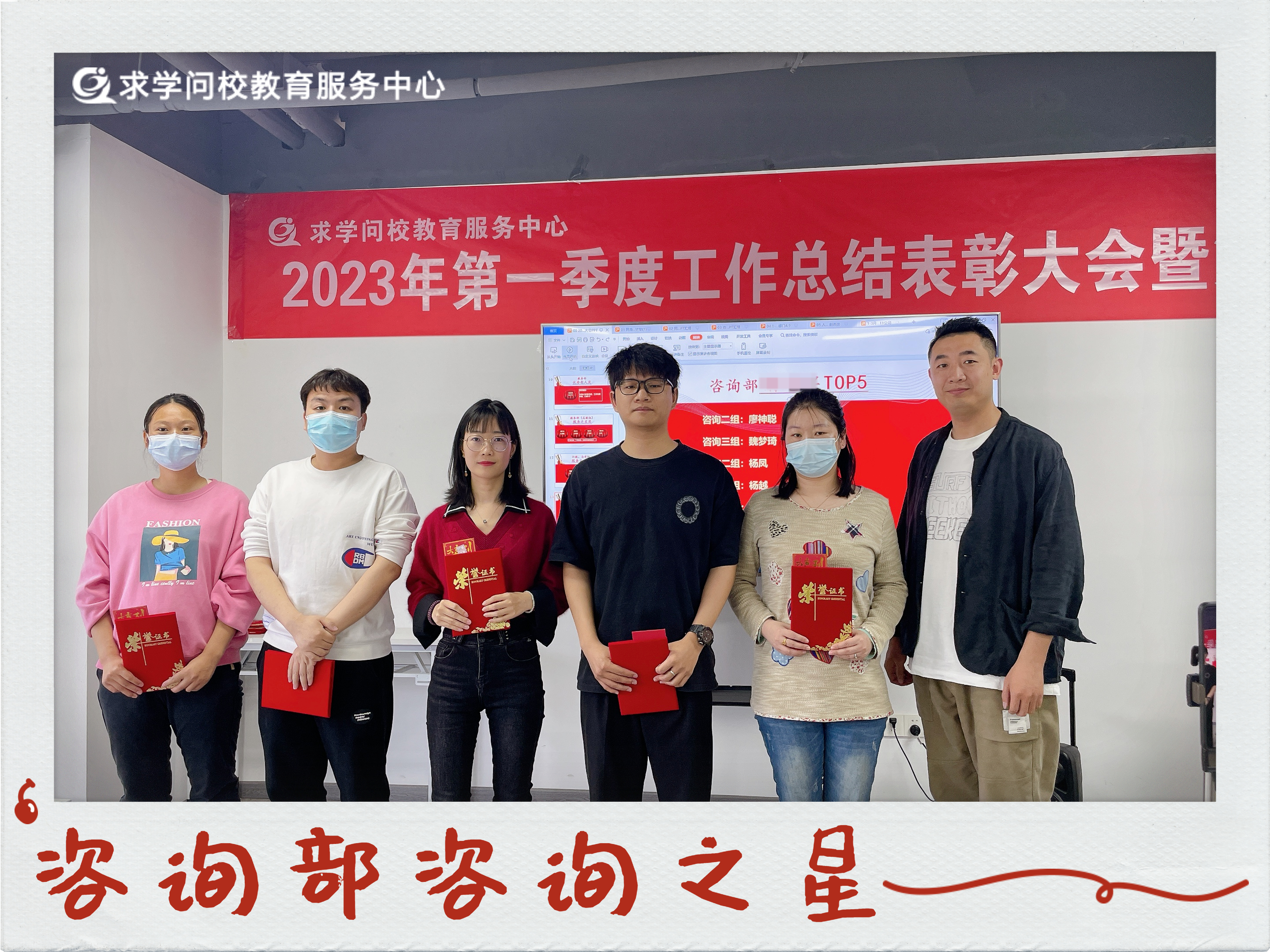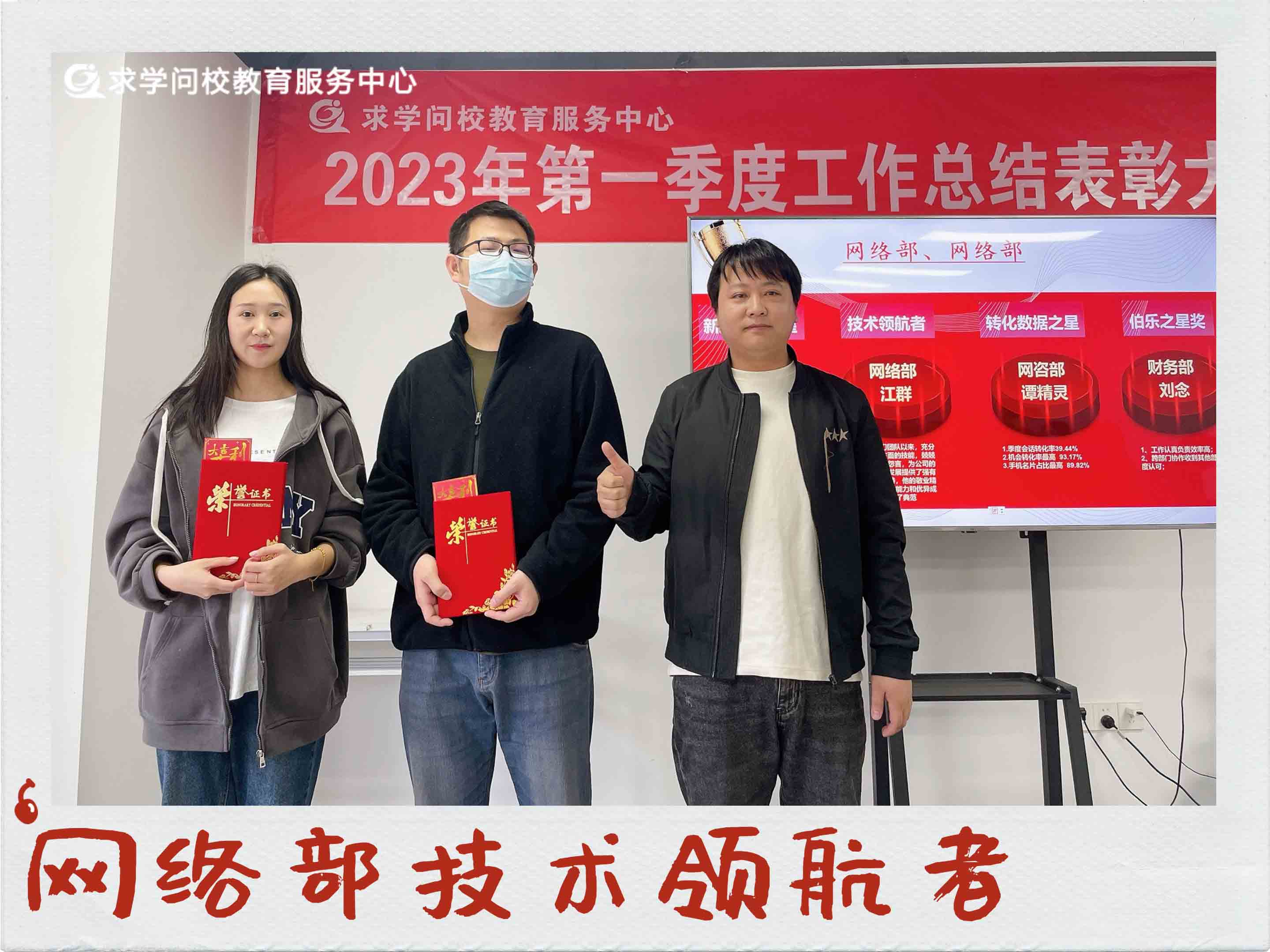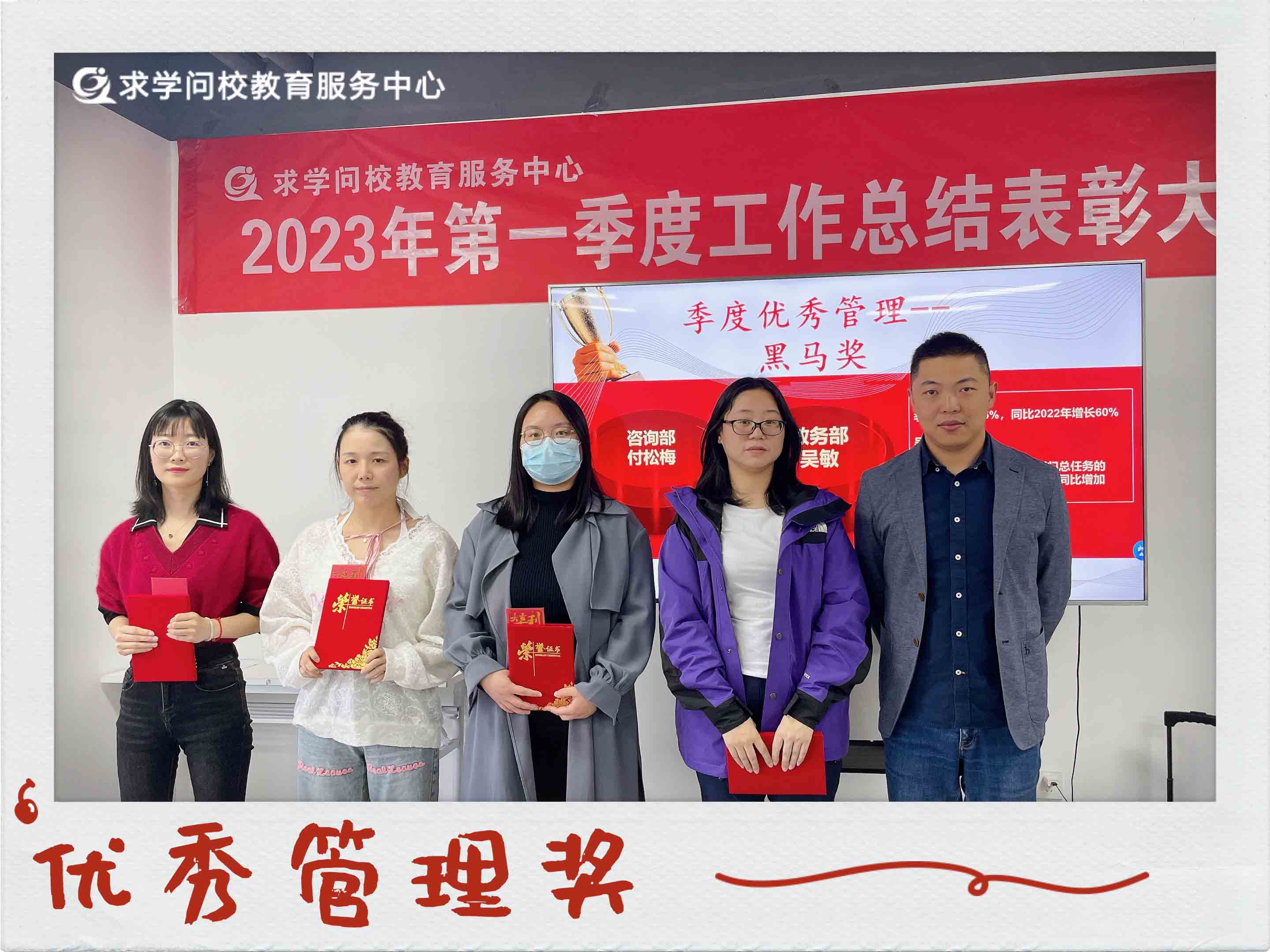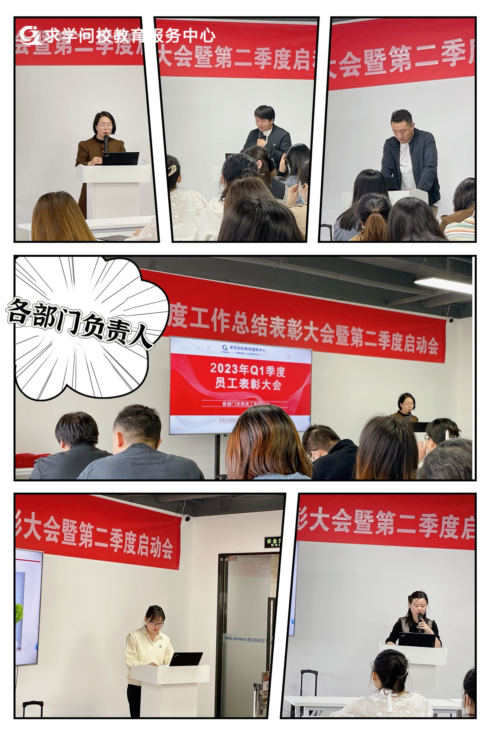 星光不問趕路人,時光不負有心人,2023年4月11日,求學問校教育服務中心召開了Q1季度工作總結暨表彰大會,會議由趙老師進行主持,頒獎的開始首先是由各部門領導總結了Q1季度各項工作取得的成果以及對Q2季度工作的規(guī)劃。