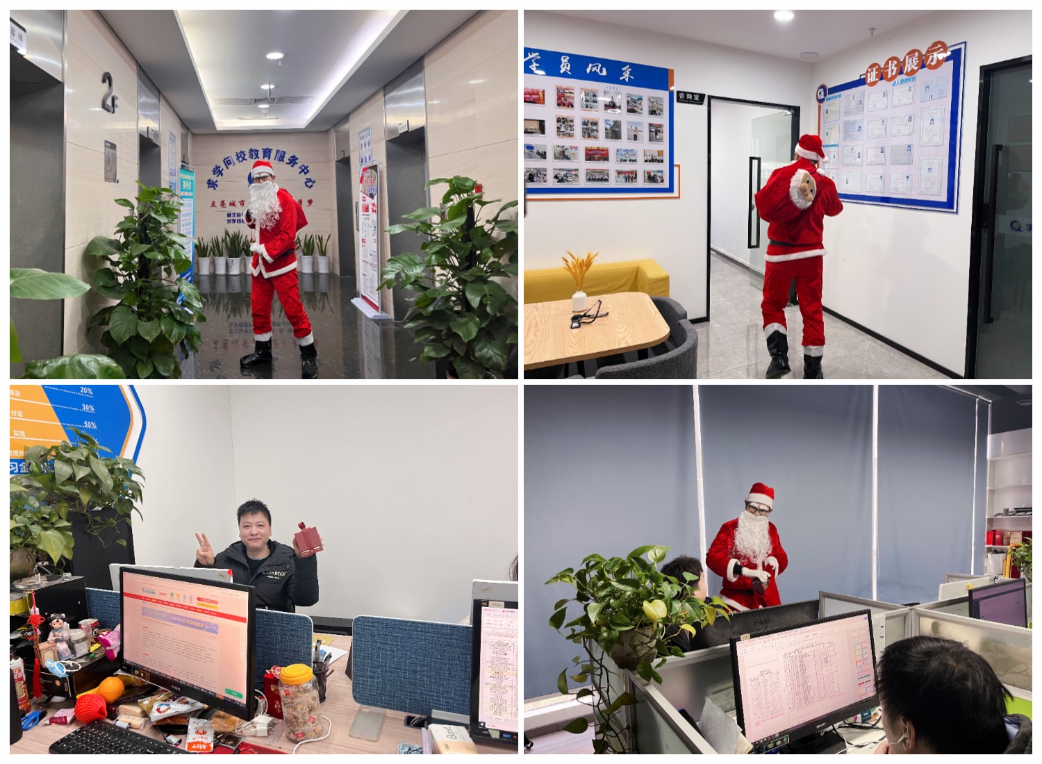 嘿嘿嘿,看過(guò)來(lái),這是我們今天的主角---圣誕老公公,他今天有一個(gè)特別重要的任務(wù),就是派發(fā)禮物,送驚喜。“噓!不要出聲”,圣誕老公公要在大家毫無(wú)預(yù)兆的情況下走到大家工位上給大家送禮物,來(lái)自求學(xué)問(wèn)校的圣誕驚喜你收到嘛?