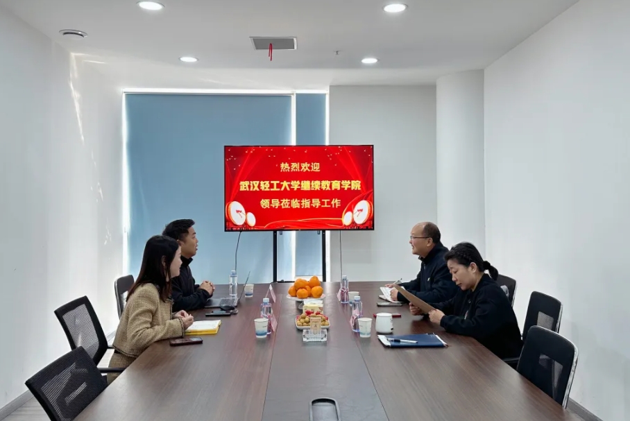 2024年3月26日上午,武漢輕工大學繼續(xù)教育學院副院長喻欣、繼教院辦主任劉京軍一行蒞臨我校實地考察指導工作,武漢求學問校校長鄧健、副校長周威等陪同考察。