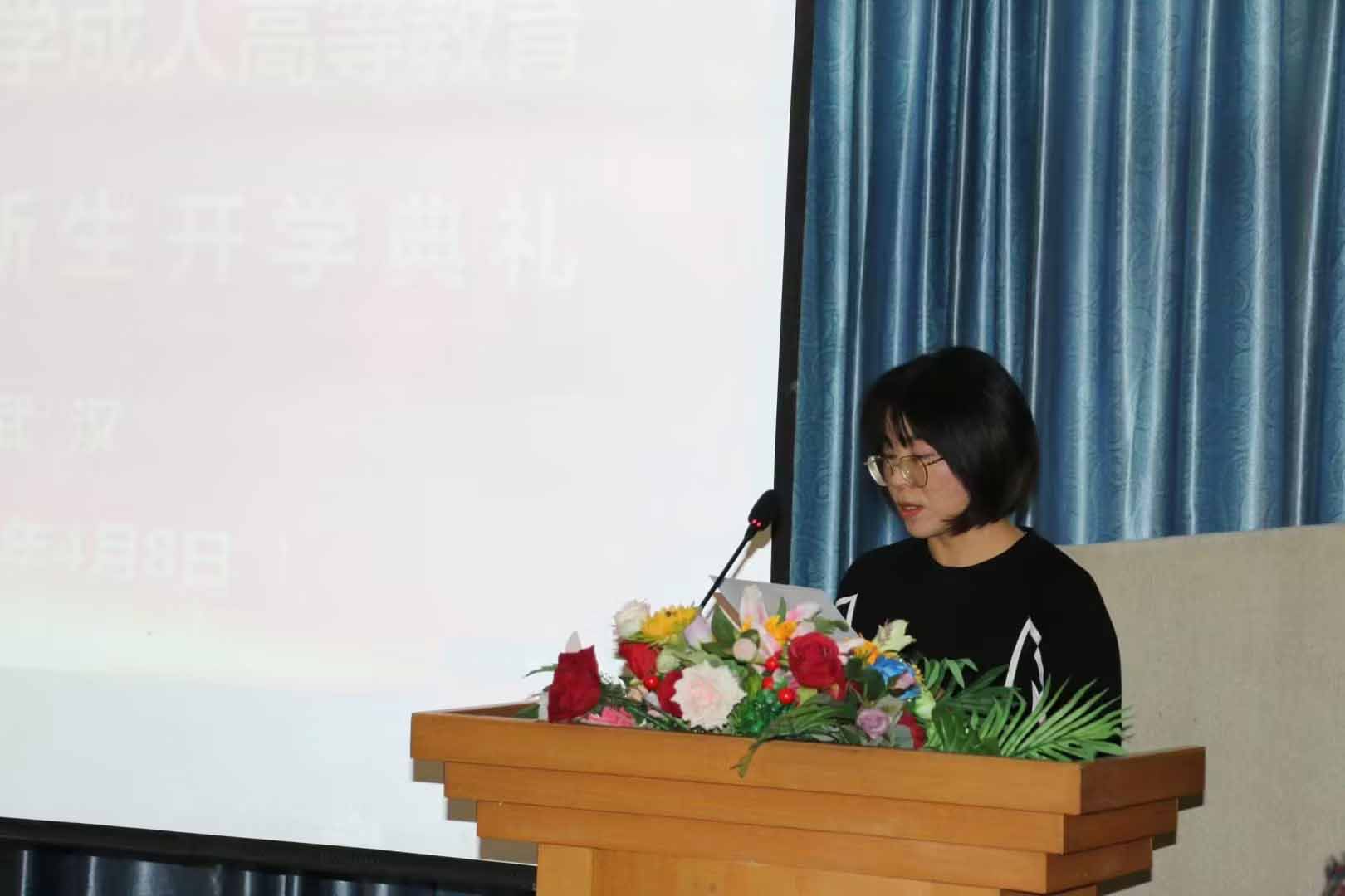 來自武漢現(xiàn)代家政進(jìn)修學(xué)院的新生輔導(dǎo)員代表王芳對(duì)新同學(xué)提出了三點(diǎn)希望,一是要樂觀向上、增強(qiáng)自信;二是要利用資源、珍惜機(jī)會(huì);三是要全面進(jìn)步、提升個(gè)人修養(yǎng)。來自武漢文泉學(xué)校的新生班主任代表周祥全從學(xué)歷提升的重要性出發(fā),希望同學(xué)們以收心、決心、恒心、愛心、用心“五心”態(tài)度認(rèn)真學(xué)習(xí),成才成人。
