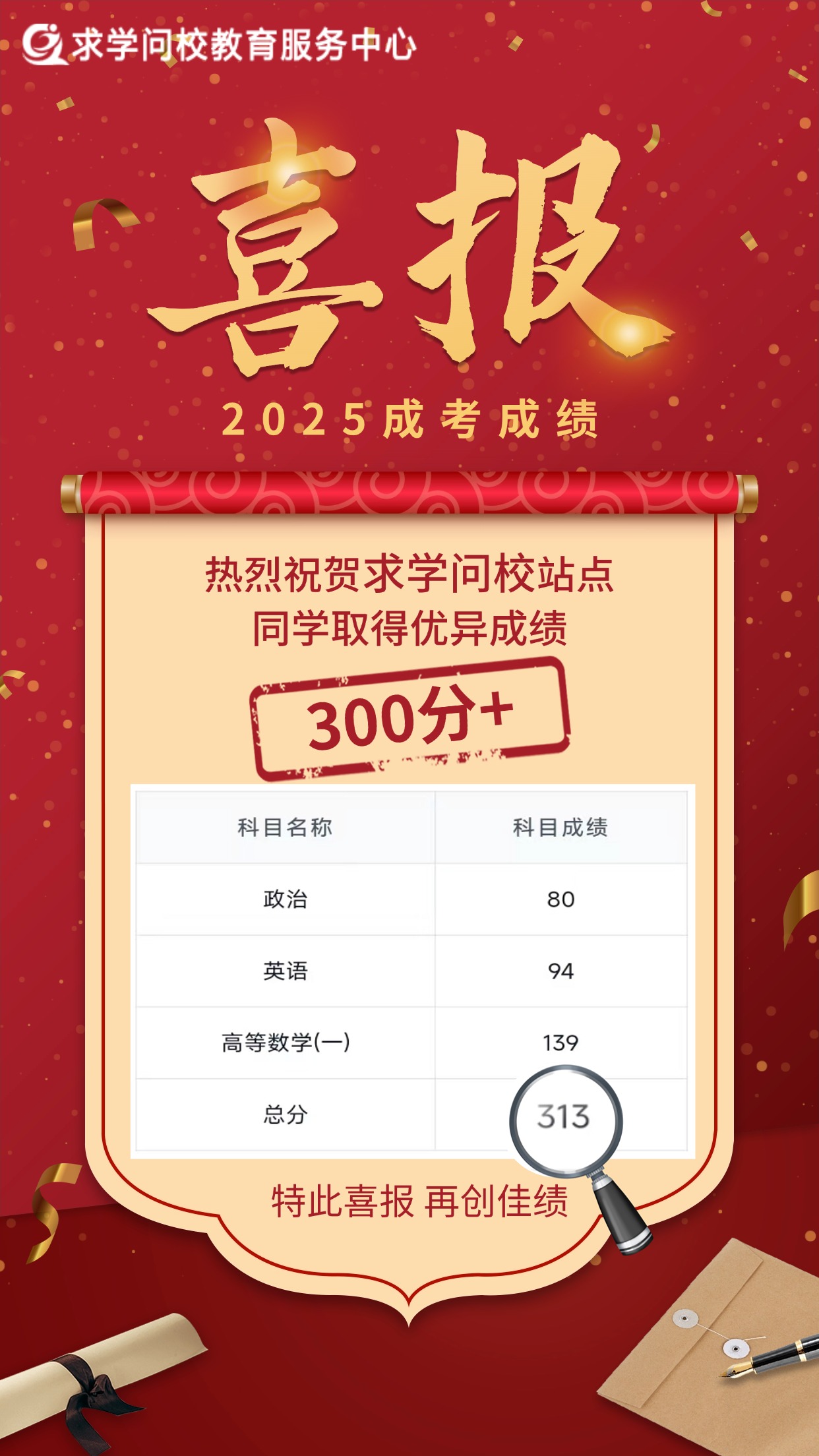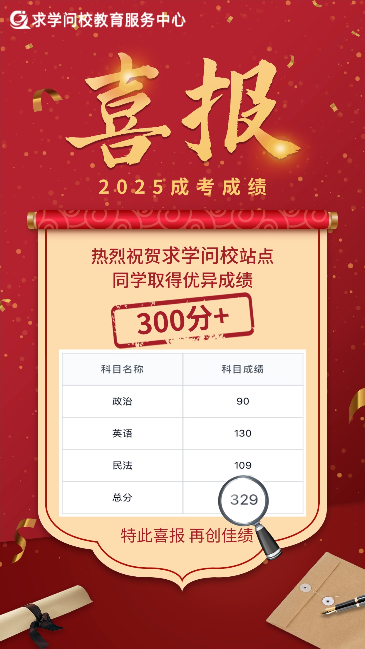 金秋送爽,碩果盈枝。在2025年全國成人高校招生統(tǒng)一考試中,求學問校站點學員不負眾望,奮勇拼搏,再次取得了輝煌的成績!在此,我們懷著無比激動和自豪的心情,向全體取得優(yōu)異成績的學員表示最熱烈的祝賀!
