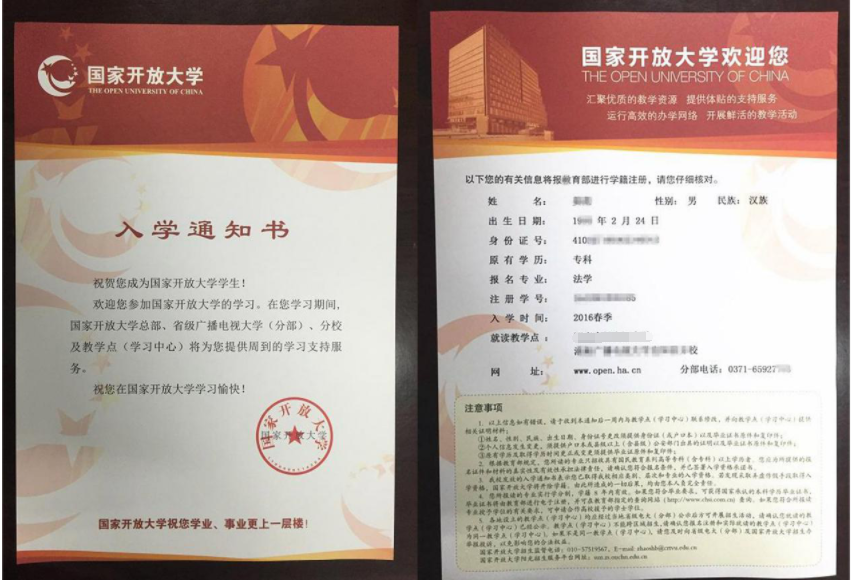 國家開放大學(xué)錄取通知書樣本展示
