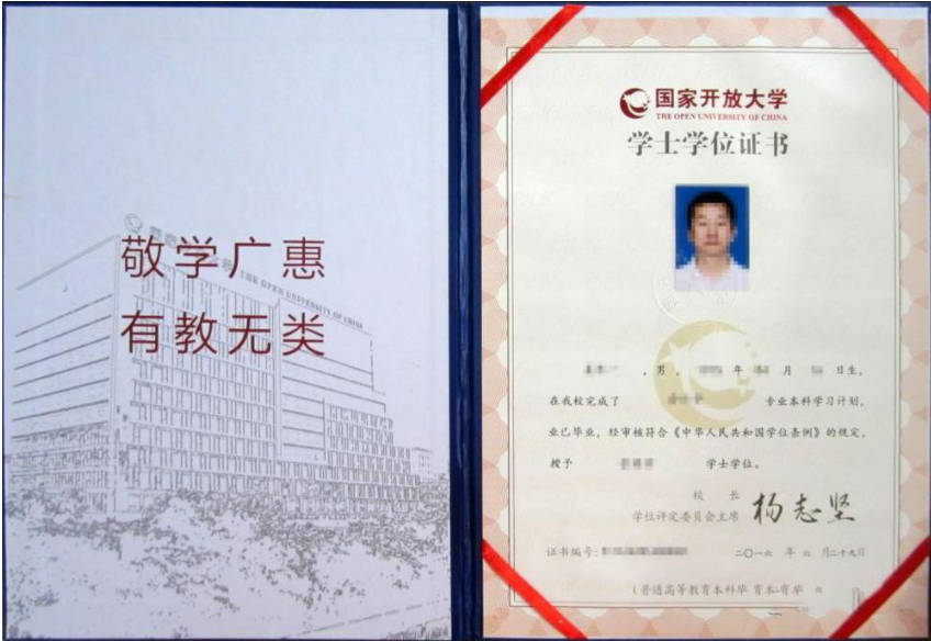 國家開放大學(xué)學(xué)士學(xué)位證書樣本展示