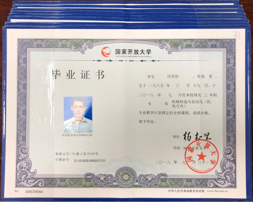 國家開放大學(xué)畢業(yè)證書樣本展示